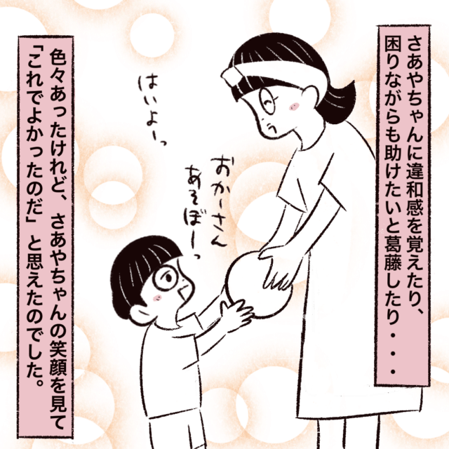 さあやちゃんの言動に違和感を覚えたり、対応に困りながらもさあやちゃんを辛い境遇から助けたいと葛藤したまるさん。色々とあったけれど、さあやちゃんの笑顔を見て「これでよかったのだ」と思えたのでした。