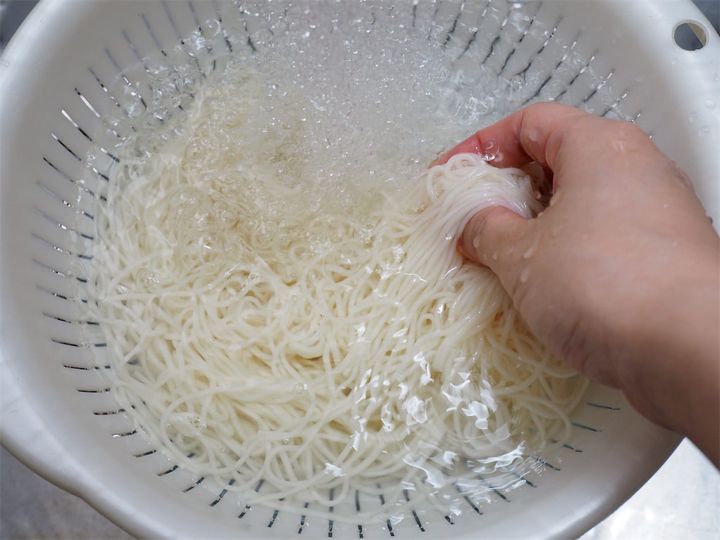 それでは、次は茹で上がったそうめんの簡単アレンジにも挑戦。まずは「冷やし醤油そうめん」から。