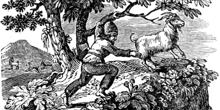 野生化したヤギを狩猟するセルカークの絵図 / Credit: commons.wikimedia.