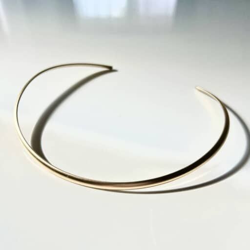 シンプルながらもラウンドフォルムが首にフィットして、マット質感がなじみよく、程よく存在感を放ってくれます。先端も丸いので、安心して付けられるのも高ポイント。首が詰まったトップスの上、首が開いたトップスの肌の上からでも合わせやすく、つけるだけでスタイリングに今の雰囲気にピッタリなアクセントとモダンな仕上がりを叶えてくれます。