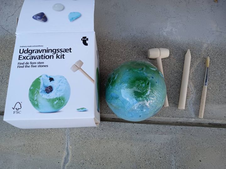 他にも発掘キットがありましたが、きれいなブルーの地球に惹かれてこちらを選んだようでした。