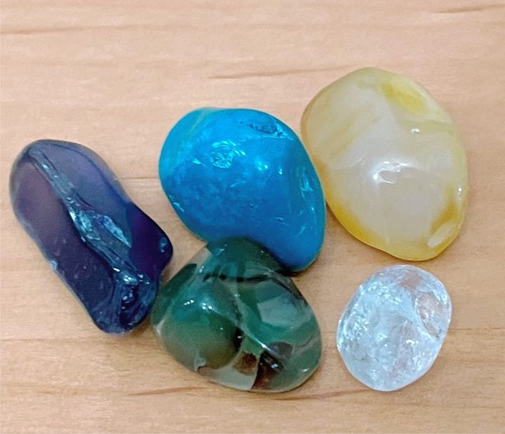 天然石が5つ、丸くて青いボールの中に埋まっているので発掘していきます。