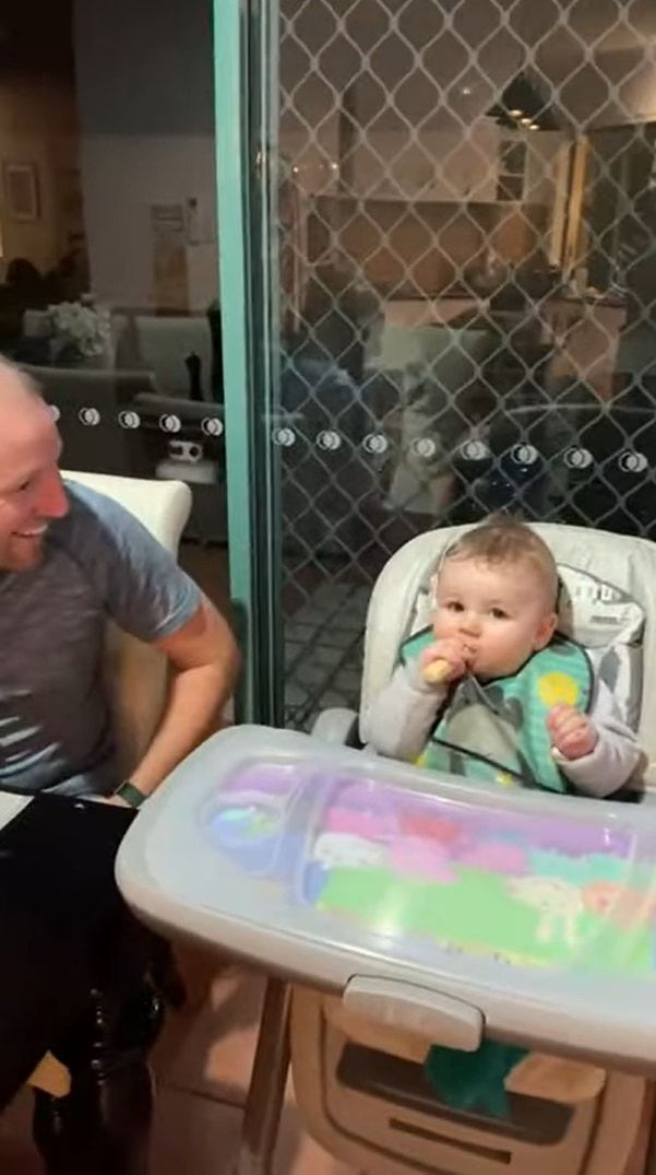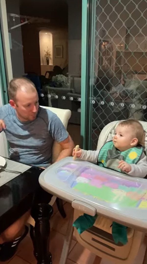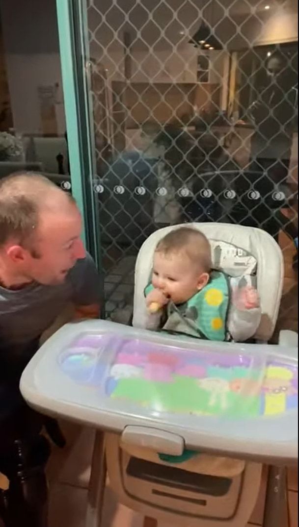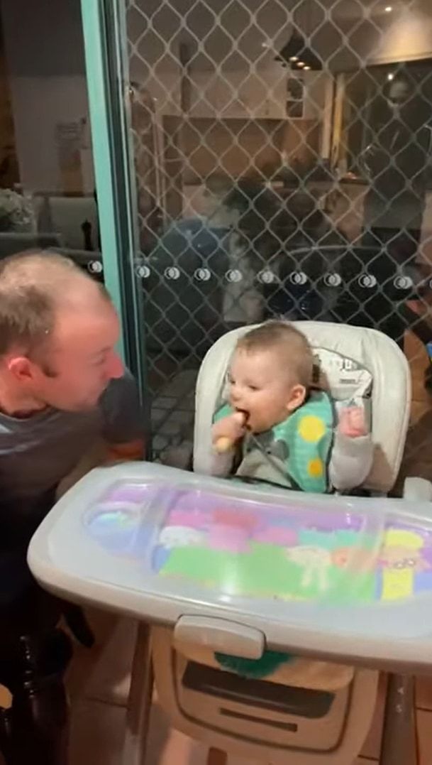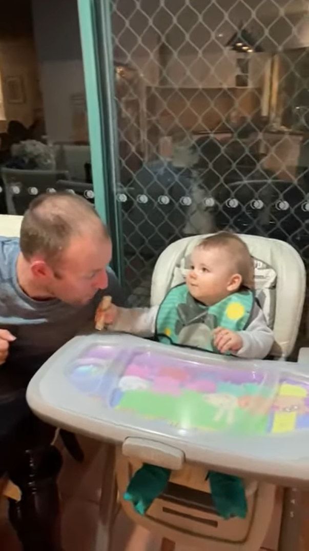 動画が撮影されたのは、オーストラリアのクイーンズランド州のとあるご家庭。 赤ちゃんがパパと一緒におやつタイムを過ごしています。
