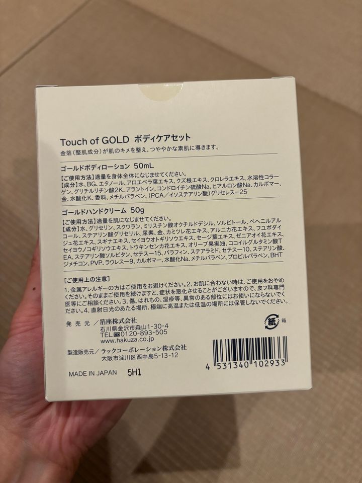 金箔」が配合されたボディローションとハンドクリームのセット。肌に塗布すると「金箔」と保湿成分が角質層に働き、キメの整った健やかな肌に!乾燥しがちな腕や脚などにたっぷり塗ると、肌をうるうる〜💧でハリや弾力のある素肌に👏✨