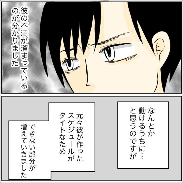 自分が思うように妻が動けないことで不満がたまるタクマさん。でも座る時間がほとんどないスケジュールは、つわりが酷い体にはそうとう辛いと思います。「気の持ち様」と言われるのはショックですよね。
