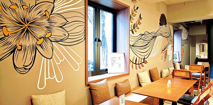 パティシエ、イザベラさんは元デザイナー。15年前にドキュメンタリーフィルムを鑑賞したことがきっかけでヴィーガンの道へと進む。当時はヴィーガンスイーツが少なかったことから、自ら開発することに。3年前には台湾最大の飲食コンテストで優勝し、その賞金を用いてオフィスを心地よいカフェ空間へリニューアル。写真は山林がテーマの複合施設『勤美0km山物所』とのコラボシリーズ。台湾最高峰の玉山をモチーフにしたケーキは白い部分に豆乳とカシューナッツ、緑の部分にサツマイモの葉を使用。ヨーグルトのような爽やかな風味で、中にはゴマ餡が入っている。そのほか、松ぼっくりをイメージしたチョコケーキや苔をイメージした抹茶ケーキなど、豊かな発想力に驚かされる。