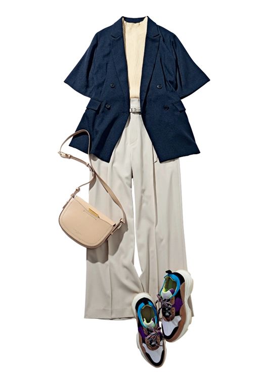 3. 夏のジャケットスタイルはメリハリ重視!スニーカーではずすしゃれ見え通勤コーデ【毎日コーデ】