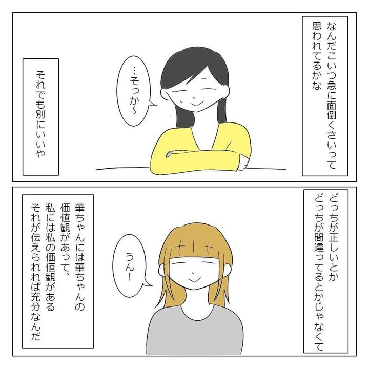 それぞれ価値観が違う人間関係の中で、自分は誰とどう過ごしたいのか。改めて考え直したくなる作品です。