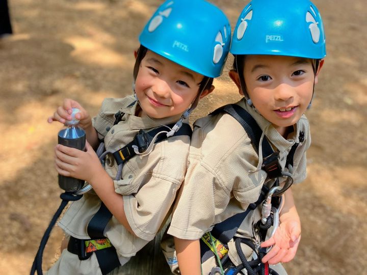 次男はというと、あまりの高さに思わず怖くて立ち止まり、目を潤ませている場面も見受けられましたが、はじまったら戻ることもできない!進むしかない状況に、意を決してゆっくり慎重に進んでいました。最近はすっかり生意気になっていた5歳次男でしたが、高い木の上ではまだまだかわいい姿が垣間見られました。