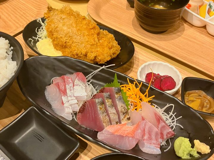 それでも漁港のすぐ横ということで、新鮮な魚をふんだんに使ったお刺身と、半生ではないアジフライの定食をおいしくいただきました。11時オープンのようなので、次回は「半生アジフライ」が食べられるように、オープン時間目指してお邪魔しようと思います。