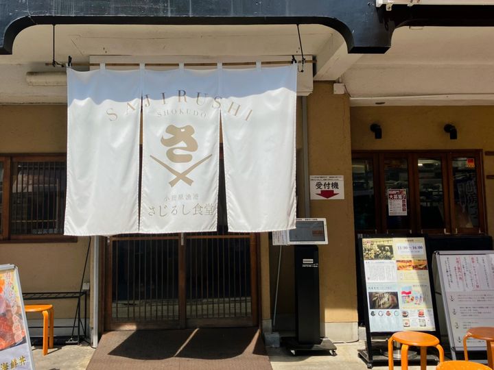 せっかくなので、昨日とはちょっと変わったアジフライを食べようと「さじるし食堂」へ行きました。半生で出されるアジフライ目当てで行ったのですが、わが家が到着した13時半の時点ではすでに売り切れ!
