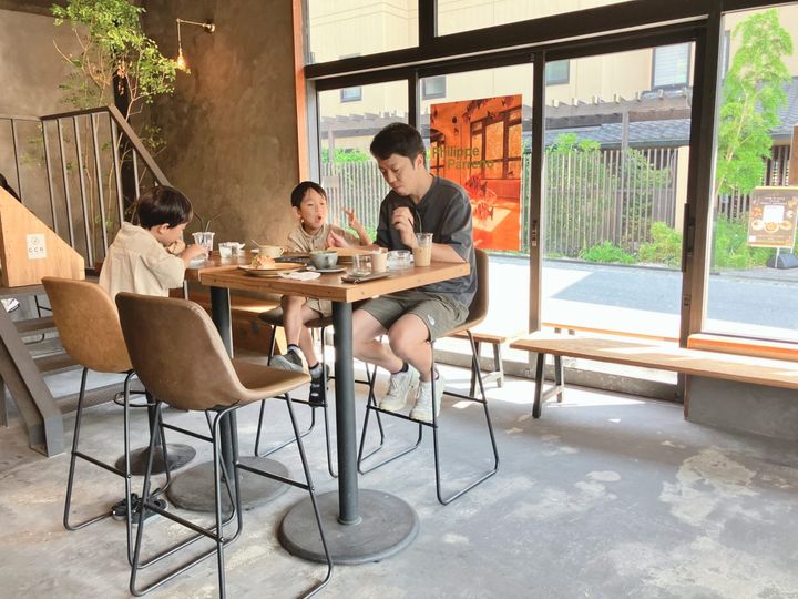 店の外まで長蛇の列ができていましたが、店内は席と席の感覚が広く、ゆったりと過ごせます◎。案の定、オシャレなカフェには子ども用の椅子も子ども用のメニューも準備されていませんでしたが、子どもたちが成長していたことで、なんの問題もありませんでした。