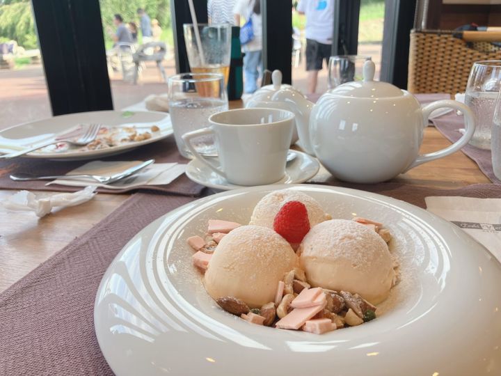 暑さを感じる感覚が欠落しているわが子たちは、植物をじっくり観察したり、虫を夢中で追いかけていました。そんな様子を涼しいカフェから見守りながら食べるデザートはまさに至福!大人にとっても子どもにとっても、最高の旅の締めとなりました。