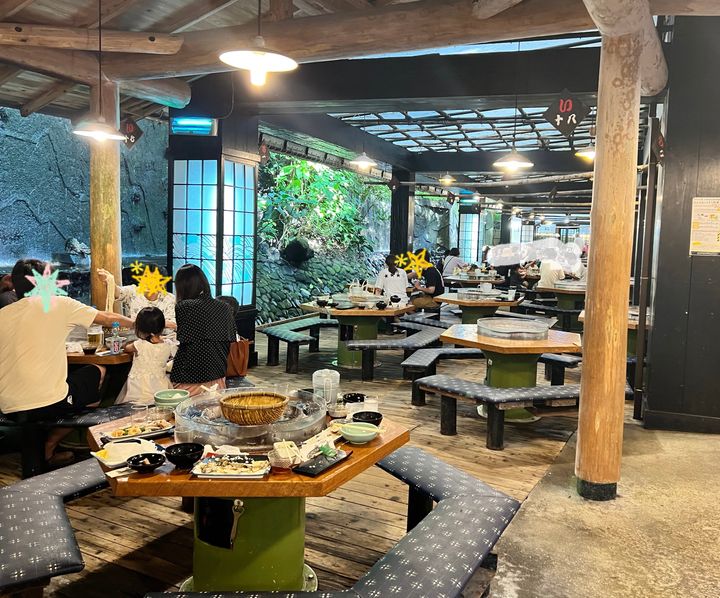 出典:MORE席の真ん中にあるのがそうめん流し機?です。
