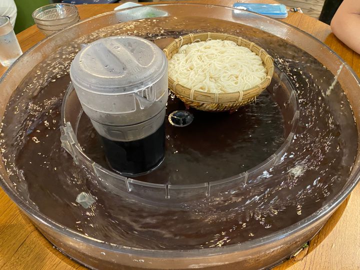 出典:MORE真ん中にそうめんと麺つゆを置いて周りでそうめんを回します。そうめんが回っているところの水は内側に流れていく式なので常に綺麗な水に変わっています