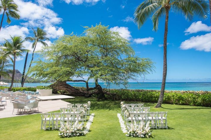 100年を誇る歴史と、伝統に培われたホスピタリティで極上のステイが叶う「ハレクラニ」。ホテルの前には古くから精霊が宿るヒーリングスポットとして有名なグレイズビーチが広がり、まさにハワイを象徴するような時間を過ごせます。ホテルは2021年に全面改装を終え、ウエディングに関してもさらに快適な環境が整いました。