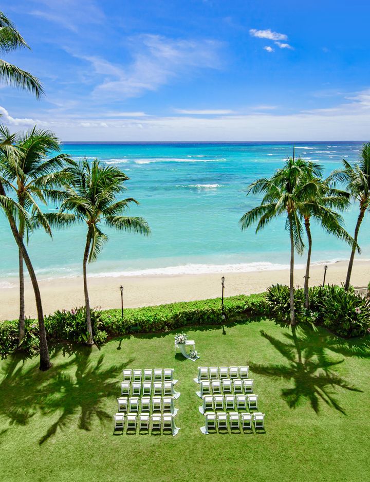 ホテルの前には、神聖な力が宿るとされたカヴェへヴェへ(ハワイ語で“除去”という意味で、かつて王族が病気の治癒に訪れていたのだとか)というエリアがあり、パワースポットとしても有名です。ビーチを目の前にしたセレモニーは特別な空気に包まれ、忘られないひとときを過ごせます。