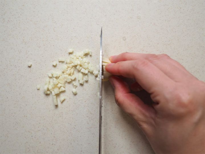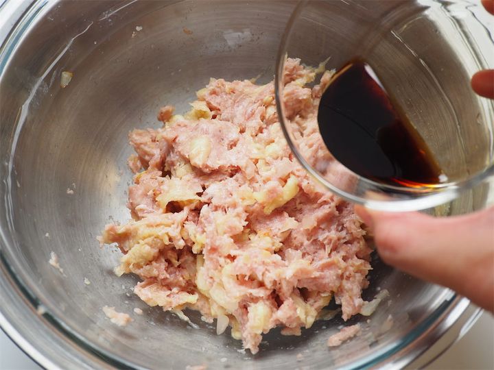 水分を抜き、下味をつけていきます。このレシピの大事なポイントで、この工程をしないと水っぽさが出て一体感が出ないのだそう。