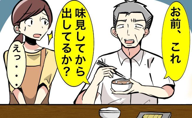 その後、彼と結婚。結婚後ほどなく、夫の実家で夕飯を作っていたときの話です。私はいつも通りに味噌汁を作ったのですが、味噌汁に口をつけた義父がひと言。