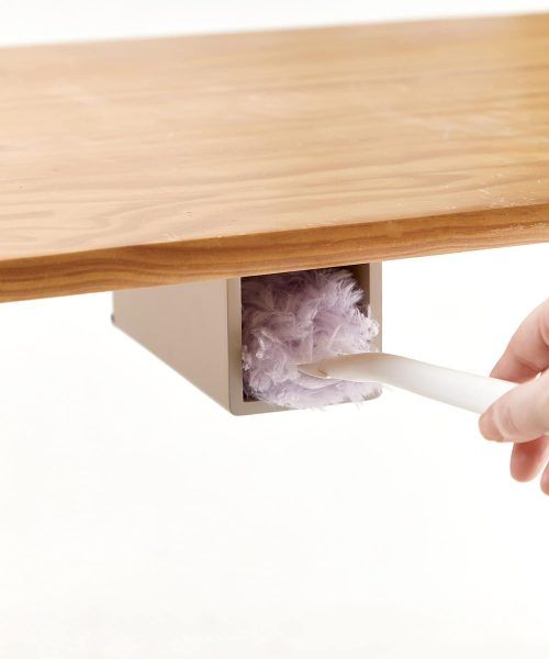 テーブルや棚にもこのようにセットできるので、よく掃除する場所の近くに設置すると便利ですね。カラーは、ワイパー収納と同じベージュ、ブラウン、木製の3色展開になります。