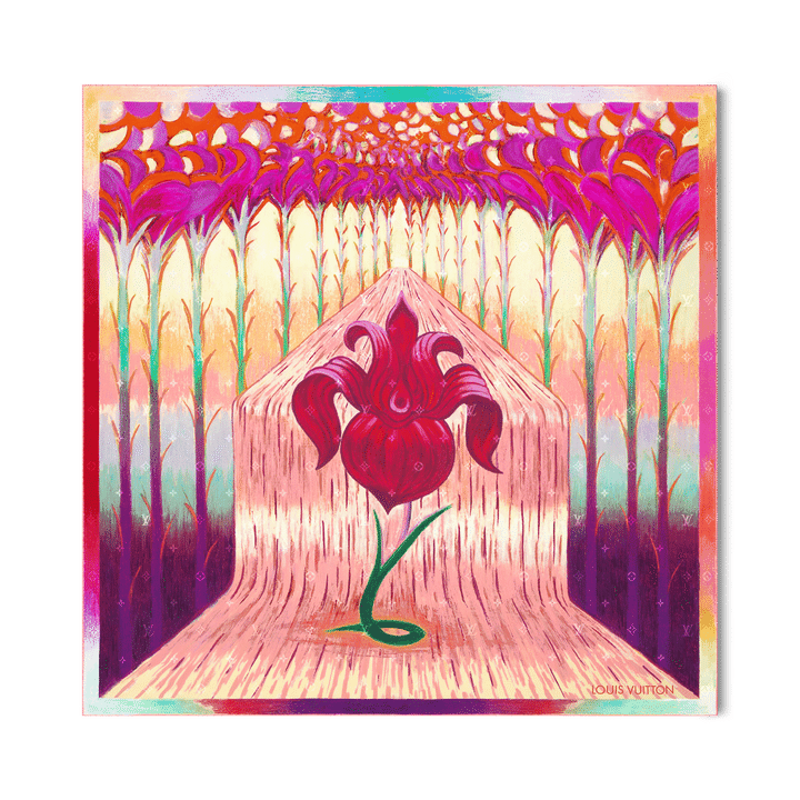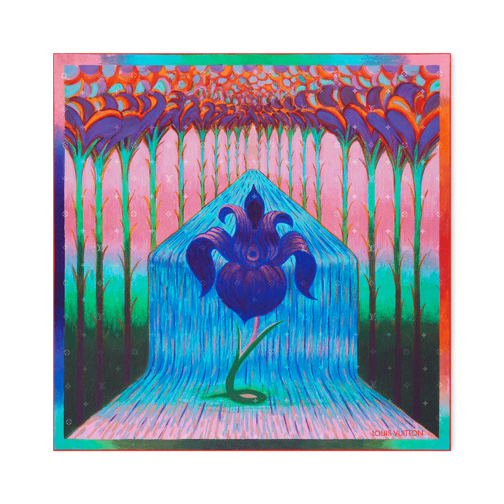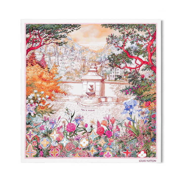 アーティストのロレンツォ・マトッティは色鉛筆とパステルを使用し、『Fires』や『Murmur』 といった有名なコミックブックや、『New Yorker』や『Süddeutsche Zeitung』に掲載されたイラストで、夢のような世界観を生み出している。ルイ・ヴィトンのカレ「Iris Spring」は、 メゾンのアニエールのアトリエ内にある歴史的なヴィトン家の邸宅の美しいアールヌーヴォー様式のステンドグラスに描かれた花へのオマージュ。多彩な木々や滝が完璧なフレームとなり、アイリスの流れるようなフォルムが、万華鏡のように素晴らしいファンタジーの中心的存在となっている。