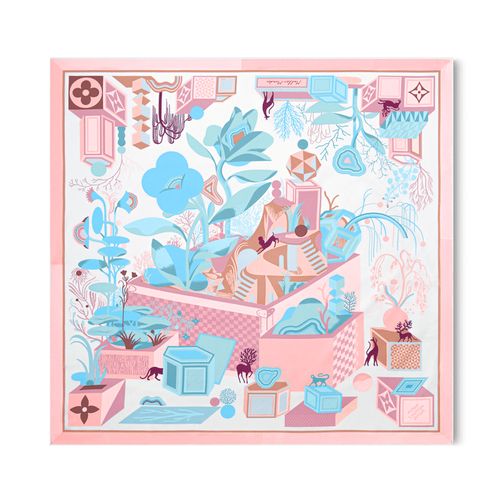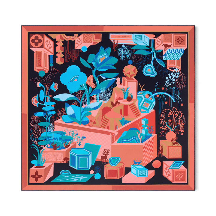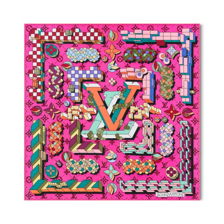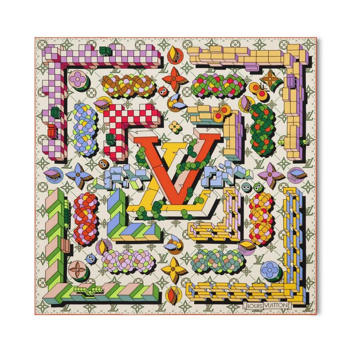 1997年にカイ・フェルメール、シュテフェン・ザウアータイグ、スヴェント・シュミタルの3人によって設立されたeBoyのピクセルアートの美は、幅広い評価を得た都市風景シリーズ 「Pixorama」により瞬く間に認識されるようになった。ルイ・ヴィトンのカレ「Maze of Precious」では、LV シグネチャーが迷路の中央に配され、ツイルからサテンまで多様な織地が迷路の境界を表現。そして迷路の中は、丸みを帯びたフラワーや四つ葉のモチーフといった ルイ・ヴィトンのモノグラム・パターンの要素に加え、ピクセル化した鮮やかな色彩の野菜やプレイフルで幾何学的な昆虫で溢れている。