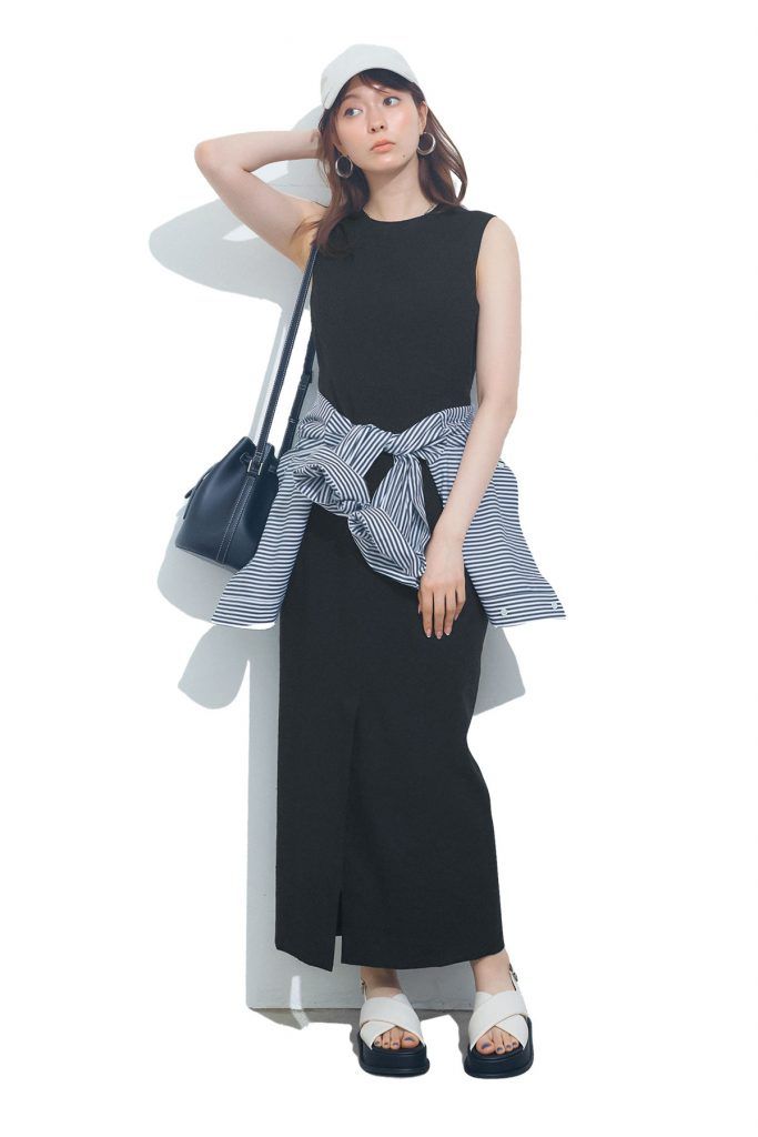 誰でも一枚は持っている、シンプルな黒のロングワンピ。キレイめな一着をリラックス気分で着こなしたいときに、クロスサンダルがぴったり!サンダル〈H5㎝〉¥17,600(シティ/ステュディオス カスタマーサポート)ワンピース¥22,000(ビューティ&ユース/ビューティ&ユース ユナイテッドアローズ 丸の内店)シャツ¥20,900(アルディー ノアール/スピック&スパン ルミネ有楽町店)キャップ¥4,400(ニューエラ)ネックレス¥19,800(マリハ)ピアス¥ 5,250(アビステ)バッグ¥45,100(ヴァジック/ヴァジックジャパン)