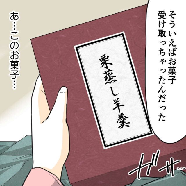 山本さんから受け取ったお菓子を開けると、栗蒸し羊羹でした。それを見て「あ、このお菓子」と思い出しました。