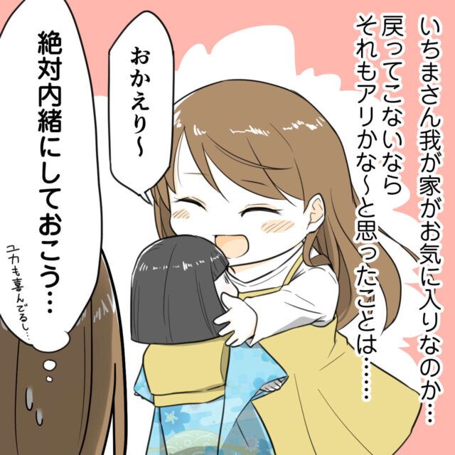 ユカは戻ってきたいちまさんを見てとても嬉しそうです。
