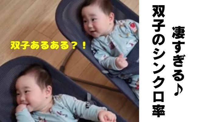 双子の赤ちゃんが同時に何かを発見?!可愛すぎる双子ならではのシンクロ行動に注目ですよ♩
