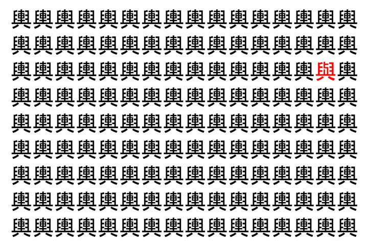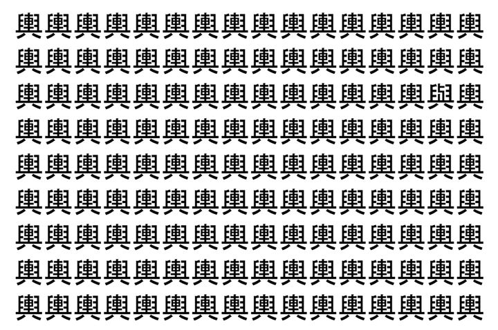【脳トレ】「輿」の中に紛れて1つ違う文字がある!?あなたは何秒で探し出せるかな??【違う文字を探せ!】