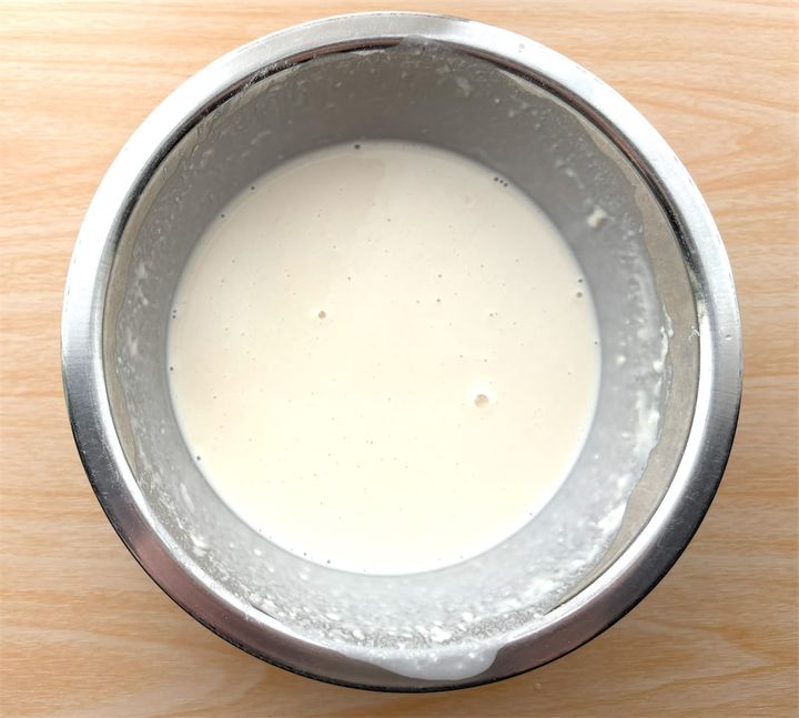 まず、生地を液体状にする時に「だま」ができないように頑張ったのですが…わたしが作った生地には少し「だま」が残ってしまいました。