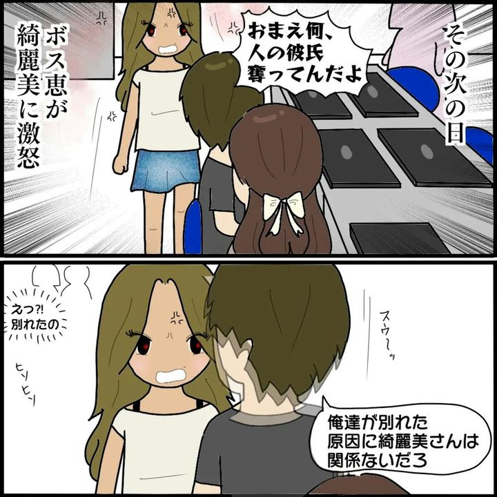 3. 社内恋愛中の彼氏が新入りに奪われた?ボス的存在の女性が取り乱す