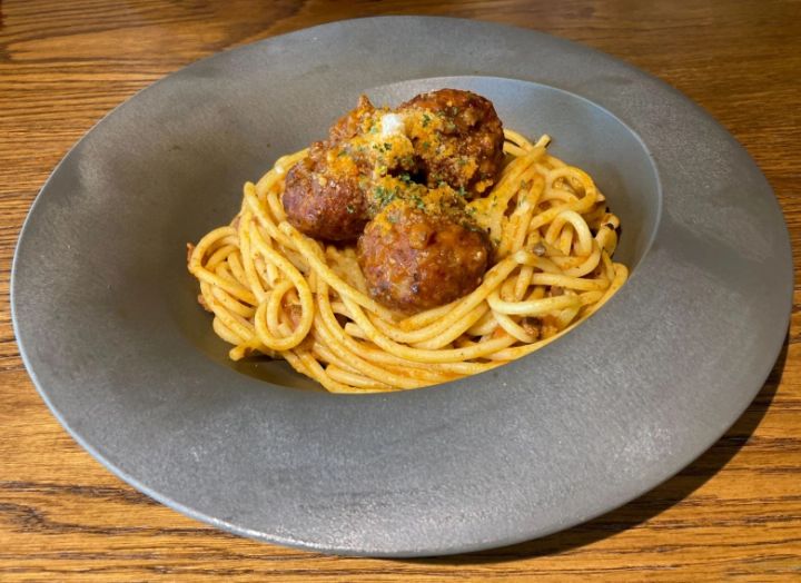 ゴロゴロっと大きいミートボールに加え、太麺のパスタは量もしっかりありましたよ。ミートボールパスタ¥1,600