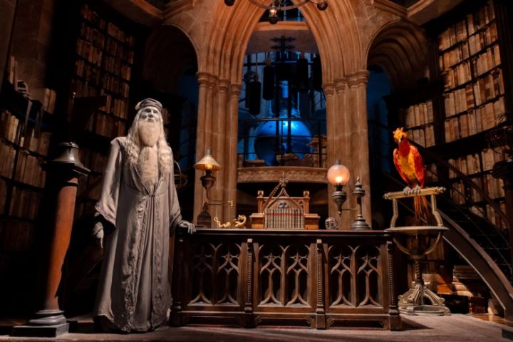 今にもダンブルドアが語りかけてきそう!校長室の壁を埋め尽くす本は、イギリス中から電話帳を集めて作られたのだとか!