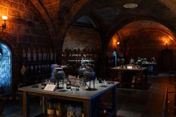 魔法薬学の教室はホグワーツ城の暗い地下にある設定。天井が低く謎めいた雰囲気がいい感じ♪