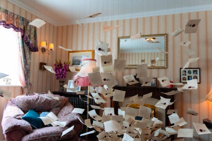 ホグワーツから大量に届いた手紙が舞うリビング。まさにハリーがそこに立って喜ぶ姿がまざまざと蘇ってきます!