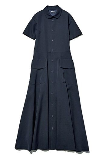 スーパーロングな丈感に丸えり、腰の上から広がるスタイルUPにも効果大なシルエットなど、クラシック&エレガントなデザイン。オンタイムもオフも、ドレスアップにも使える頼れる1枚。 ネイビーワンピース/SEA(エスストア)