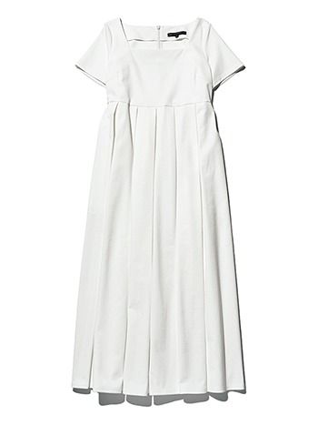 肉厚な白のコットンを、胸元もキレイに見えるスクエアネックとタックフリルでフレンチなムードへ。ハイウエストデザインでスタイルアップも約束。白スクエアワンピース/TSURU By MARIKO OIKAWA