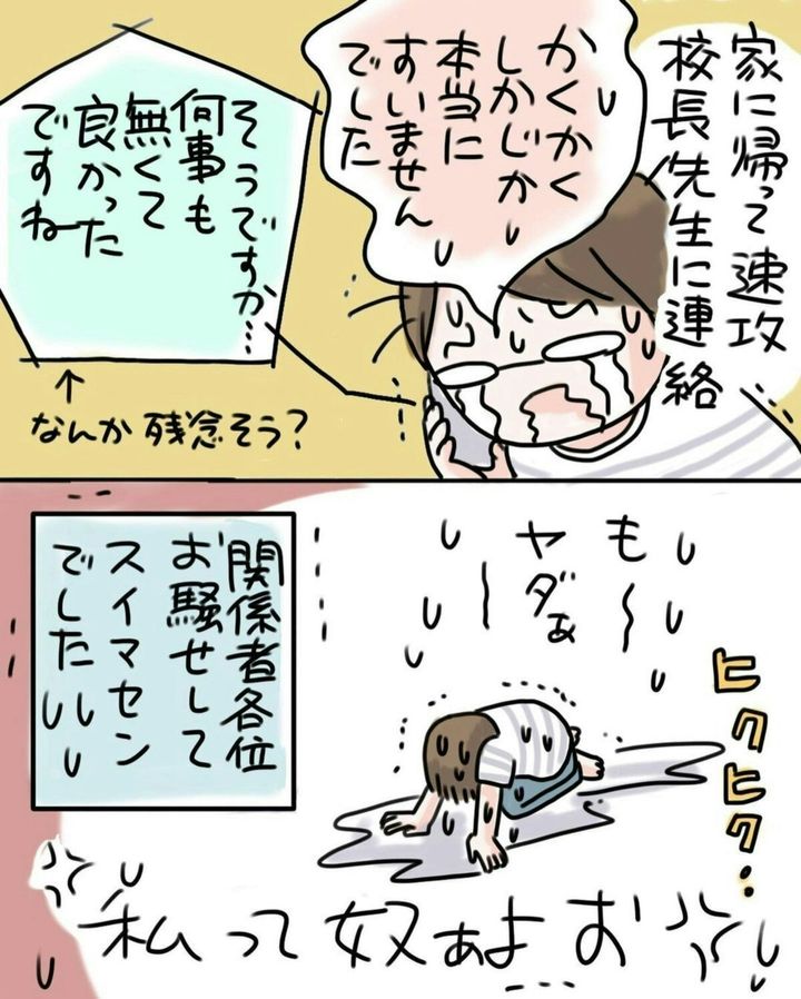 誰にでも、やってしまった…という勘違いや早とちりはありますよね。いわゆるおっちょこちょいで済めばいいのですが、時に思い込みは危険な場合もあります。今回ご紹介するのは、あつこ(@atsuko9581)さんが実際に経験した早とちりエピソードです。ある日、突然校長先生が訪問してきました。「子どもになにかあった?」と不思議に思いながら校長先生とのやり取りをします。さて、どこからあつこさんの勘違いが始まるのでしょうか。『犯罪やと思ったらわたしのドジやった話』をご紹介します。どうぞご覧ください。