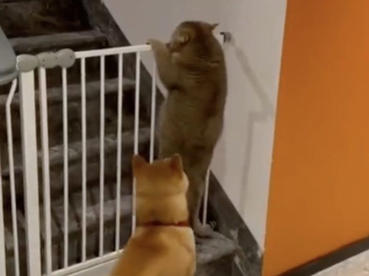 脱走を試みる猫。優しい助っ人がやってきてくれて