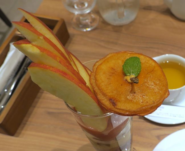 デザートはこれまたBIGな「旬のフルーツパフェ リンゴ」(2,200円)をいただきました。生リンゴのほか、薄い層になっているのもリンゴをスライスして乾燥させたドライリンゴです。