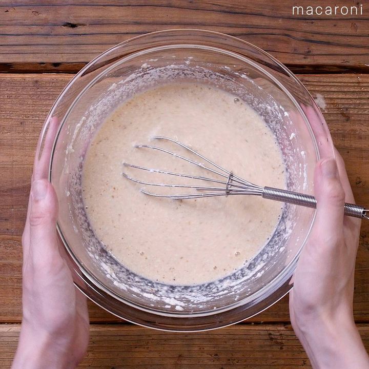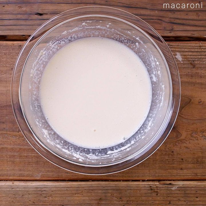 5: 豆乳を少しずつ加え、その都度混ぜます。