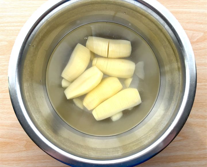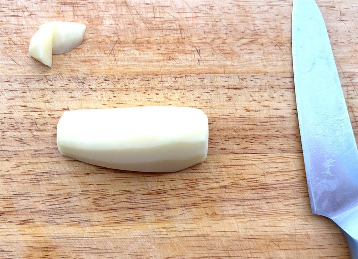 わたしが切ったじゃがいもは、高さがだいたい1~2cmほどだったので、上の画像のようなサイズに切り揃えました。