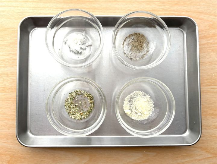 塩、こしょう、オレガノ(ハーブソルトなど)、粉チーズ…各適量
