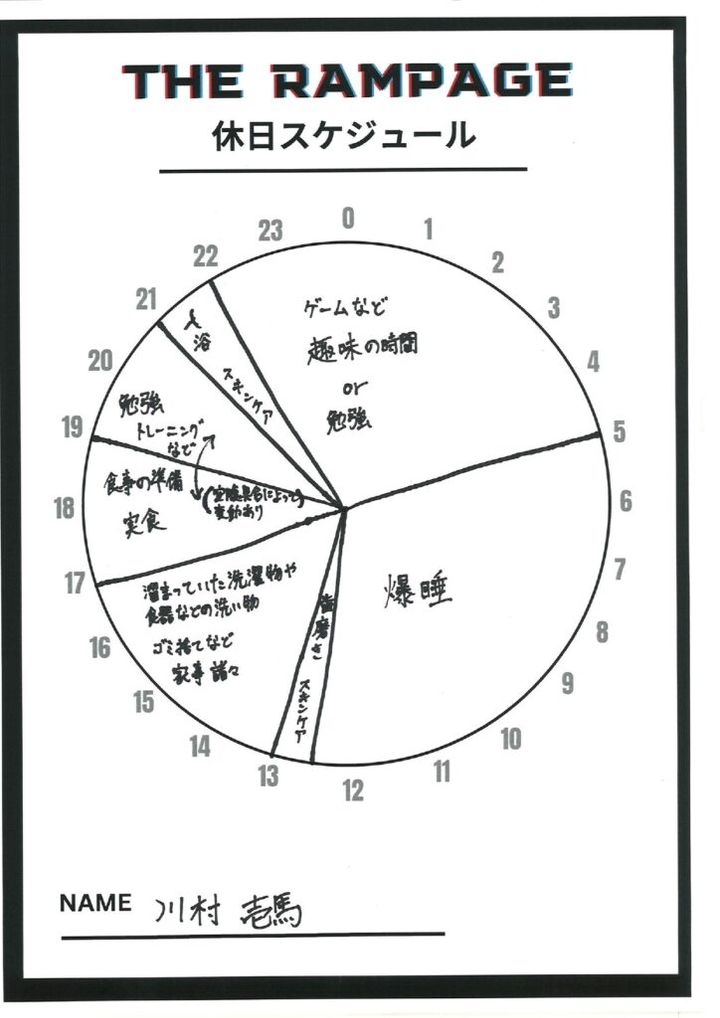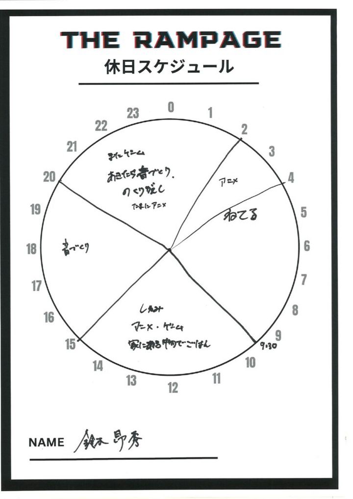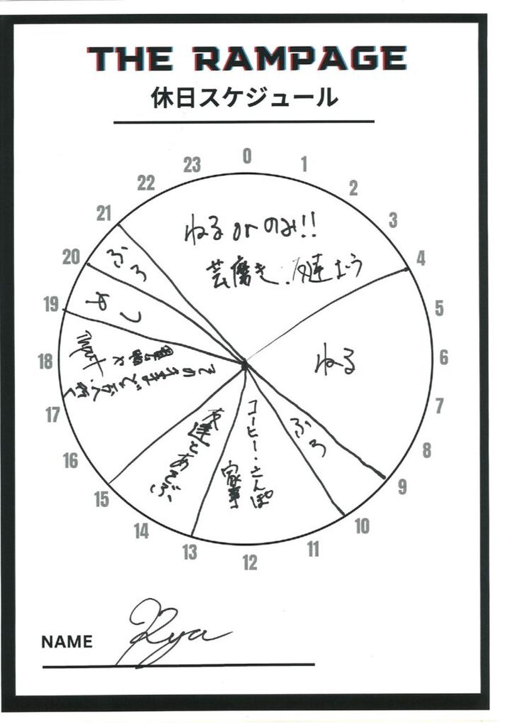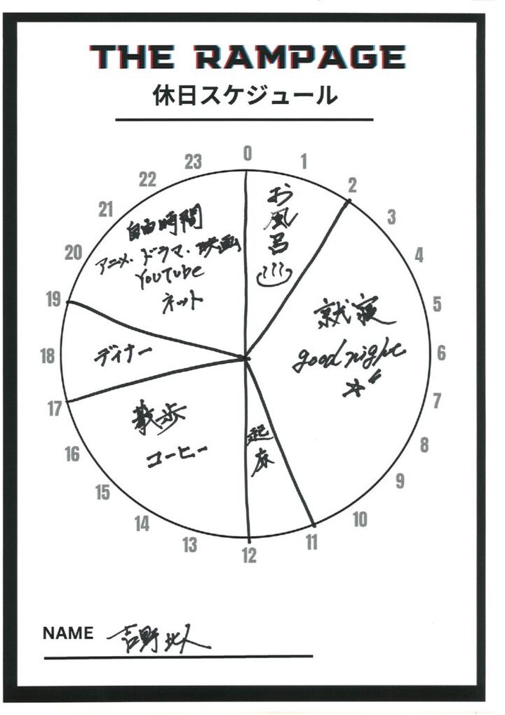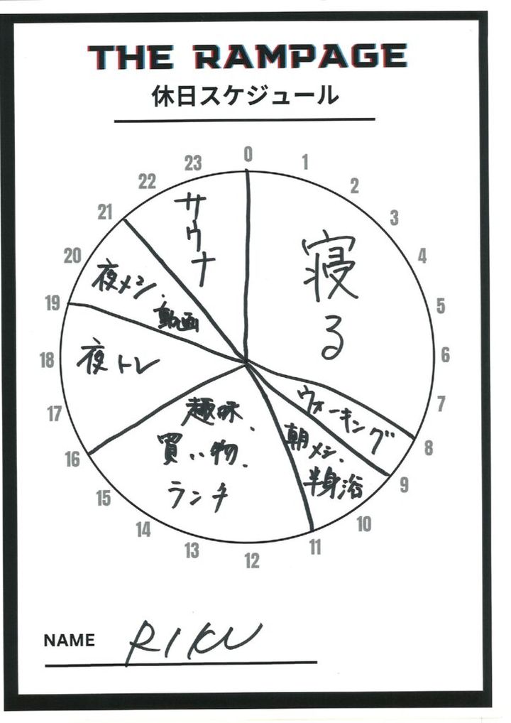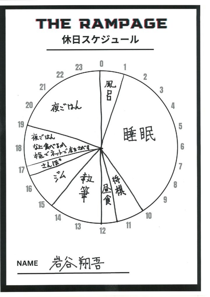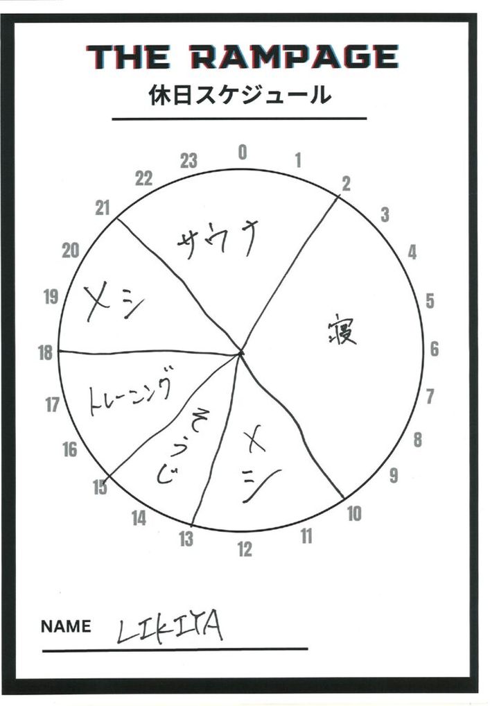 3. 【手書き休日スケジュール】THE RAMPAGE 16人のキャラクターが炸裂!メンバーの個性あふれる休日の過ごし方を大公開