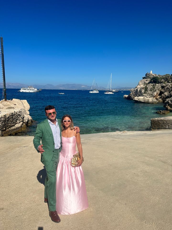 選んだ色はベビーピンク。1999年のアカデミー賞グウィネス・パルトロウが纏ったガウンにインスパイアされて決めたというカラーだ。最終的な仕上がりにあまりにも満足したソート・シルヴァーズは、生まれ変わったドレスを着る機会が訪れるのを今か今かと待っていたそう。そしてついに、シチリア島での友人の結婚式で着用するチャンスが来た。