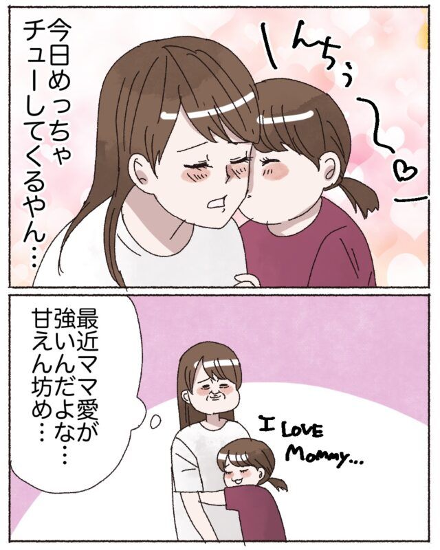 私のほっぺに何度もチューをしてくれる今日の娘。