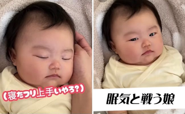 お赤ちゃんが眠気と戦っている様子に癒されますよ♪