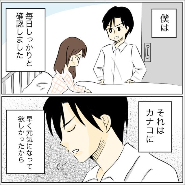 僕がカナコの食べた食事の量を毎日しっかり確認するのは、早く元気委なって欲しかったからです。